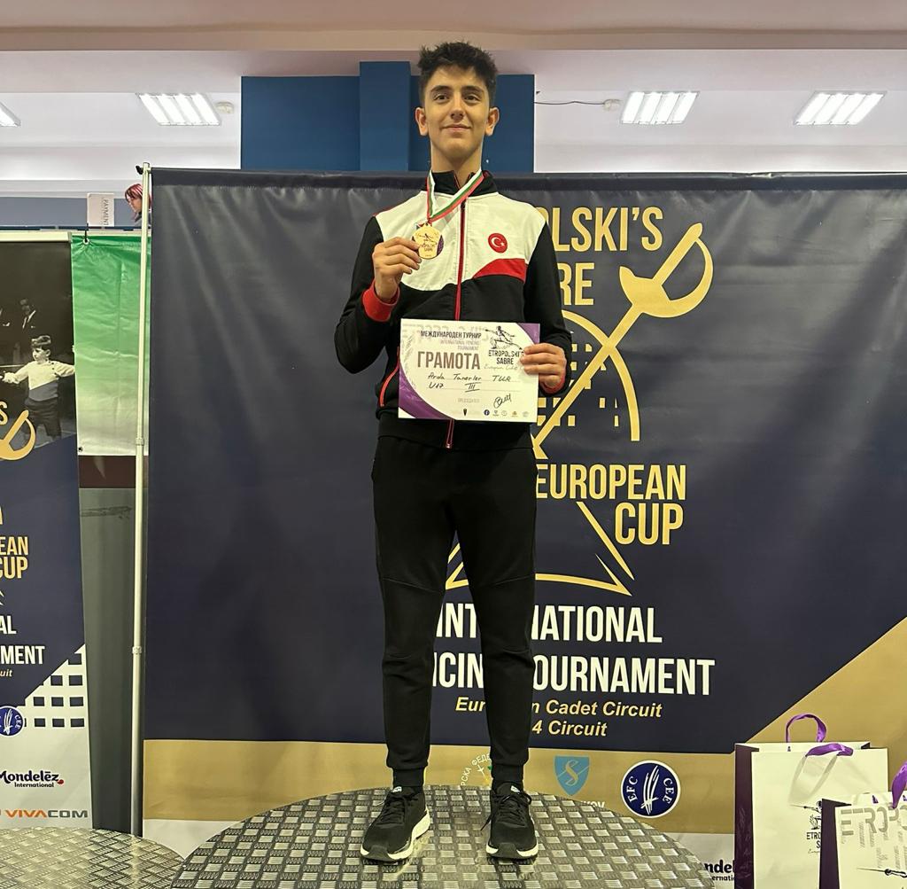Bulgaristan’da 17-19 Kasım tarihlerinde düzenlenen EFC Yıldızlar Circuit Turnuvası’nda Yiğit Ayaz, Arda Tanerler, Ateş Efe Toker ve Furkan Yaman’dan kurulu yıldız erkekler kılıç takımımız şampiyon olurken; yıldız kadınlar kılıçta Deniz Duvan bronz madalya elde etti.