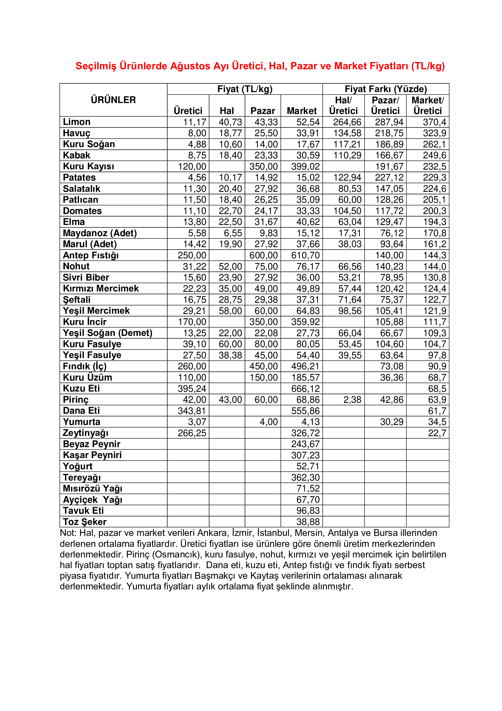 “Ağustos ayında üretici ve market arasındaki fiyat farkı en fazla yüzde 370,4 ile
