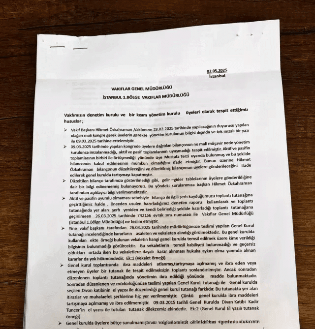 Başvuruda imzası bulunan vakıf üyeleri, genel kurul sürecinin iptali ve yeni bir toplantı yapılması talebinde bulundu. Vakıflar Kanunu ve Türk Medeni Kanunu’na göre vakıfların belirtilen kurallara uyması zorunlu. İhlallerin hem idari hem de adli yaptırımlara yol açabileceği vurgulanıyor.
