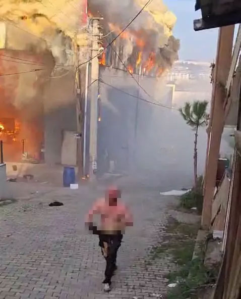 Olay anına ait görüntülerde, bir kişinin yarı çıplak halde alevlerin arasından çıkarak canını kurtardığı anlar yer aldı. Görüntüler kısa sürede sosyal medyada büyük yankı uyandırdı.