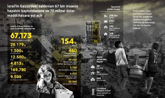 Ateşkesin ardından Gazze Sivil Savunma Müdürlüğü, şehir sokaklarından 63 Filistinlinin cenazesinin çıkarıldığını duyurdu. Ancak yetkililer, enkaz altında ve sokaklarda daha fazla cenaze bulunduğunu belirtiyor. İsrail’in 8 Ekim 2023’ten bu yana sürdürdüğü saldırılarda 67 binden fazla Filistinli hayatını kaybetti, 170 bine yakın kişi yaralandı.