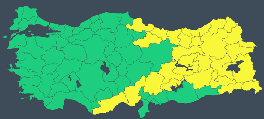 MGM, Adıyaman, Ağrı, Artvin, Bingöl, Bitlis, Diyarbakır, Elazığ, Erzincan, Erzurum, Giresun, Gümüşhane, Hakkari, Kars, Malatya, Muş, Ordu, Rize, Samsun, Siirt, Tokat, Trabzon, Tunceli, Van, Bayburt, Batman, Şırnak, Ardahan ve Iğdır için yoğun kar yağışı uyarısı yaptı.