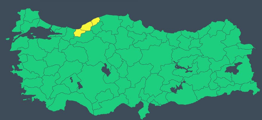 Meteoroloji, Bartın, Düzce ve Zonguldak için sarı kodlu uyarı verdi. Sarı kod, hava durumunun potansiyel olarak tehlikeli olduğunu ve meteorolojik şartlardan etkilenebilecek faaliyetlerde dikkatli olunması gerektiğini ifade ediyor.