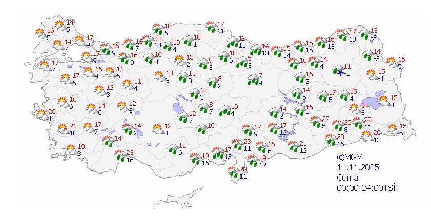 MGM, Marmara’nın doğusu, Batı ve Orta Karadeniz ile Kütahya, Antalya, Mersin, Adana, Eskişehir, Çankırı, Sivas, Giresun, Trabzon, Gümüşhane, Erzincan, Tunceli ve Bingöl çevrelerinde yağış beklendiğini açıkladı. Yağışların özellikle Sakarya, Düzce, Zonguldak ve Bartın çevrelerinde kuvvetli olacağı öngörülüyor.