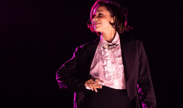 ikinci defa söyledi. Ünlü sanatçı sahnede giydiği siyah smokinden esinlenilerek